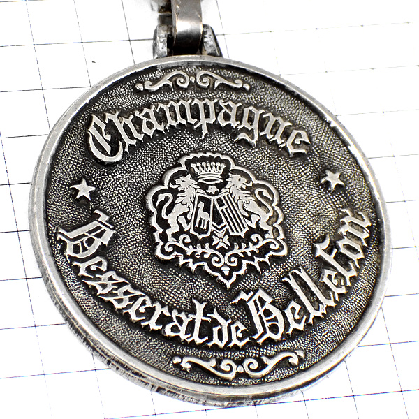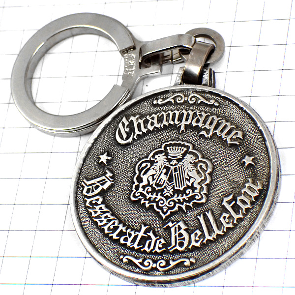 キーホルダー・シャンパーニュ酒シャンパン紋章シルバー銀色 CHAMPAGNE BESSERAT-BELLEFON FRANCE