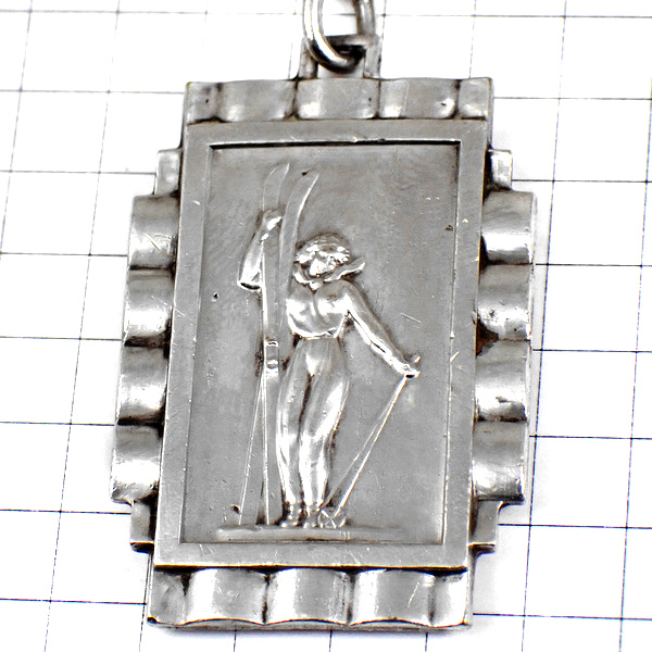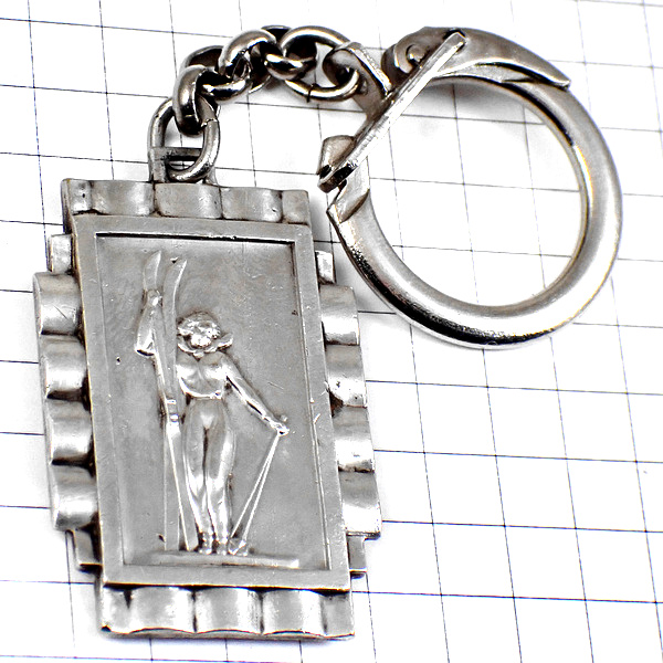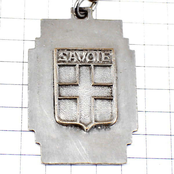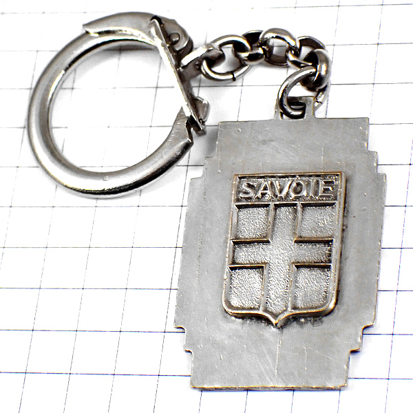 キーホルダー・サヴォワ県十字の紋章スキーヤー女の子シルバー銀色