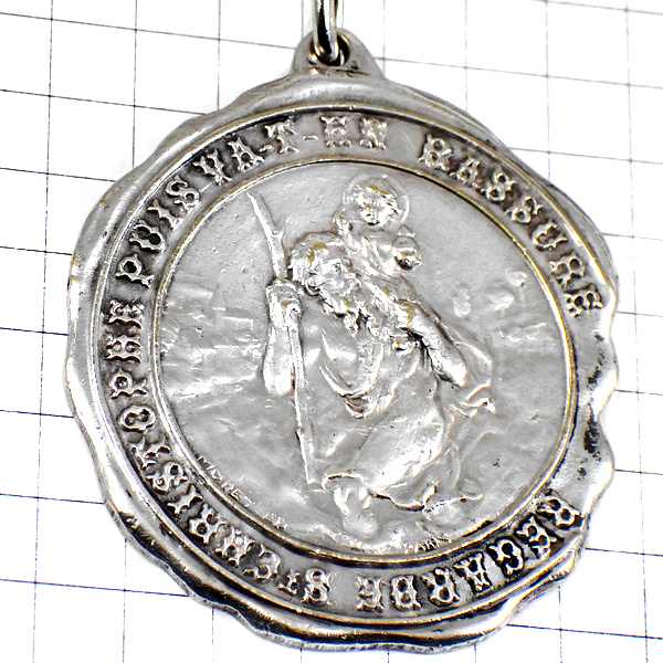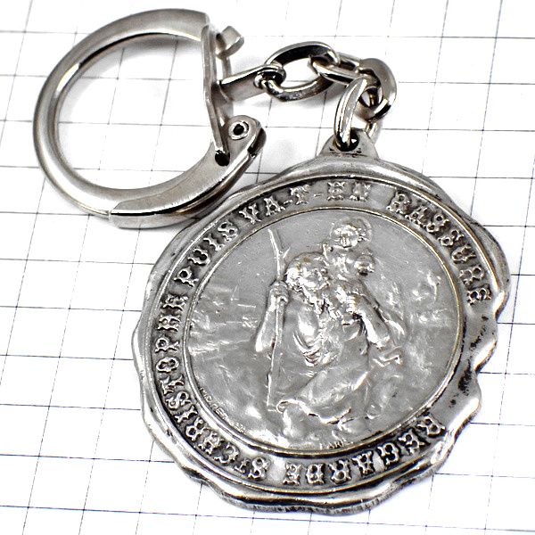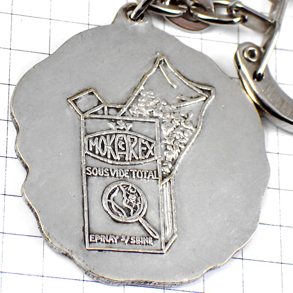 キーホルダー・コーヒー豆の箱クリストフォロス聖人シルバー銀色 CAFES-MOKAREX ST-CHRISTOPHE FRANCE
