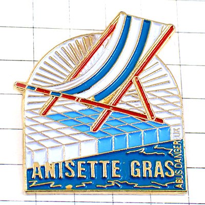 ピンバッジ・プールサイドのデッキチェア椅子アニゼットお酒 ANISETTE-GRAS