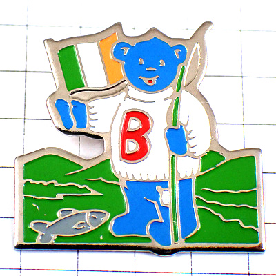 ピンバッジ・アイルランド国旗サカナ魚と青い熊B観光ガイド BUTAGAZ FISHING IRELAND FLAG