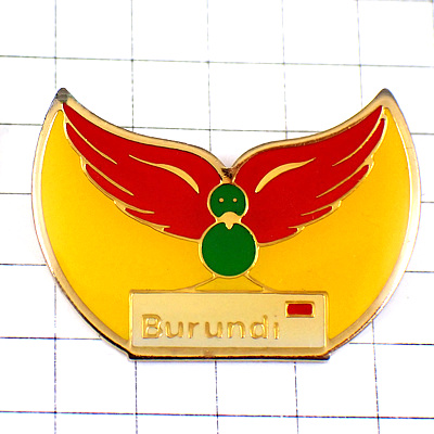 ピンバッジ・赤い翼みどり色の鳥 BURUNDI AFRICA