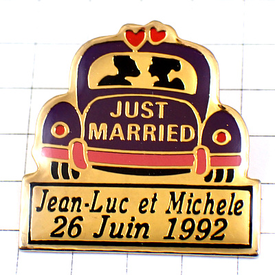 ピンバッジ・新婚カップル車ハネムーン結婚 JUST-MARRIED