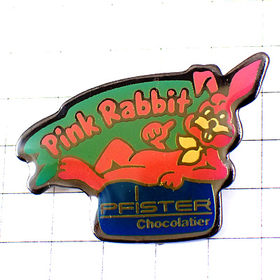 ピンバッジ・ピンク色のウサギ兎チョコレート店