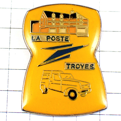 ピンバッジ・ラポスト酒シャンパーニュ栓シャンパン黄色い郵便局の車トロワ