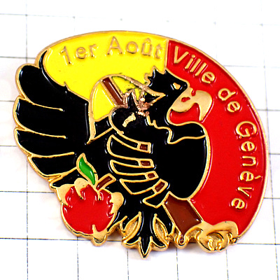 ピンバッジ・スイスのジュネーヴ紋章の黒い鷲クロスボウ弓リンゴ林檎 GENEVE SWISS EAGLE