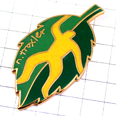 ピンバッジ・葉っぱに黄色い人ニクラウストロックスラー画スイスのグラフィックデザイナー NIKLAUS-TROXLER SWISS LEAVE