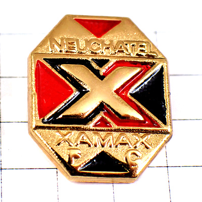 ピンバッジ・サッカークラブ金色アルファベットXスイス赤と黒とゴールド