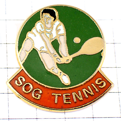 ピンバッジ・テニス選手レシーブ金色ラケット球ボール