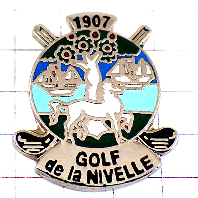 ピンバッジ・白い馬ゴルフ場2席の船ゴルフクラブ GOLF NIVELLE FRANCE