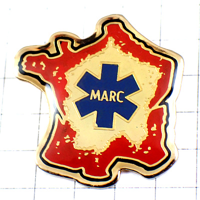 ピンバッジ・ブルー青い救急のマーク地図フランス型