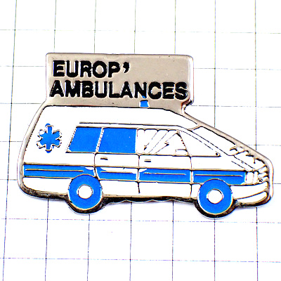 ピンバッジ・白い救急車ブルー青いマーク救急医療