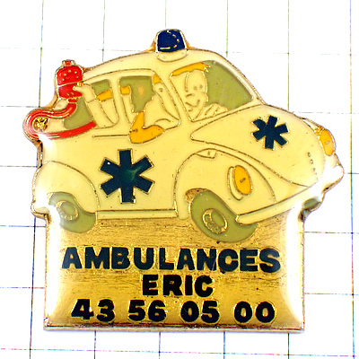 ピンバッジ・ワーゲンビートル救急車ブルー青いマーク緊急輸血救急医療