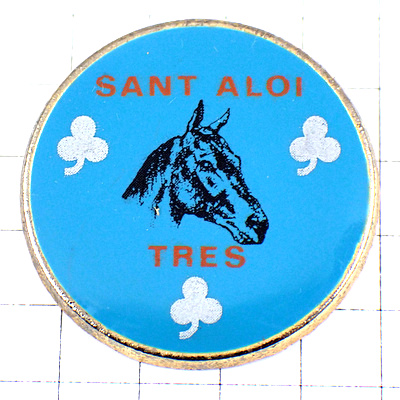 ピンバッジ・黒馬うま三つ葉のクローバー