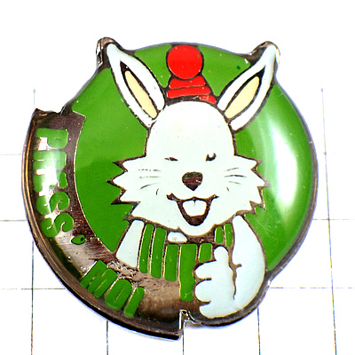 ピンバッジ・「押して」ウサギ白兎 RABBIT PRESS-MOI FRANCE