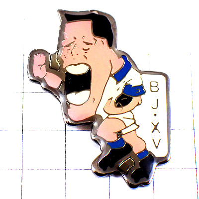 ピンバッジ・顎の長いラグビー選手ボールを持って走る