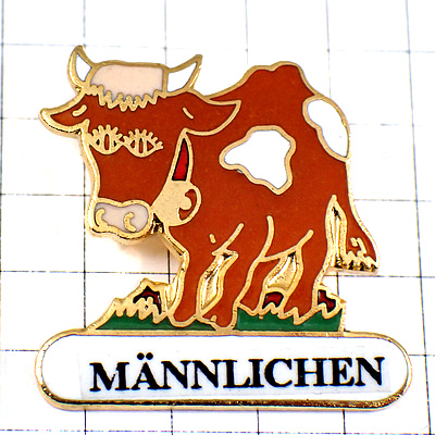 ピンバッジ・メンリヘンの茶色いウシ牛スイス山アルプス