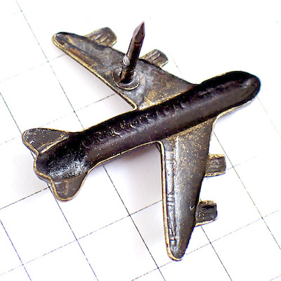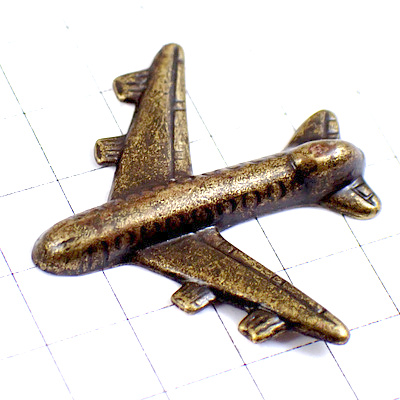 ピンバッジ・飛行機ブロンズ色旅客機立体型