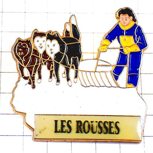 ピンバッジ・シベリアンハスキー犬ぞりHUSKY LES-ROUSSES TRAINEAU FRANCE