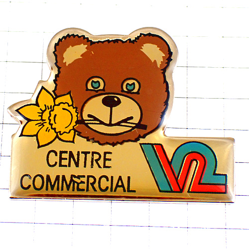 ピンバッジ・青い目の熊のぬいぐるみ黄色い水仙の花クマ