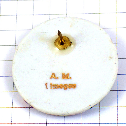 ピンバッジ・テニス選手リモージュ焼テニスコート陶磁器製