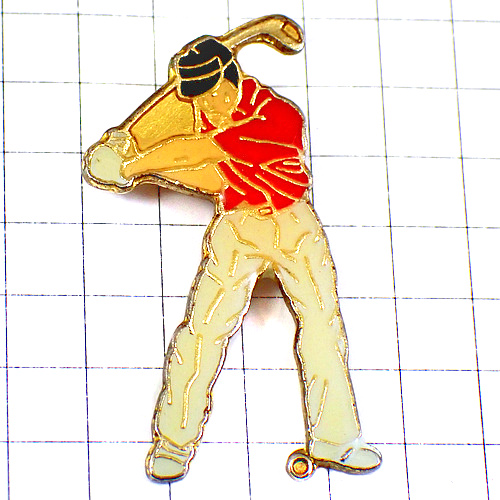 ピンバッジ・ゴルファー足元の球ショットの瞬間ゴルフ場