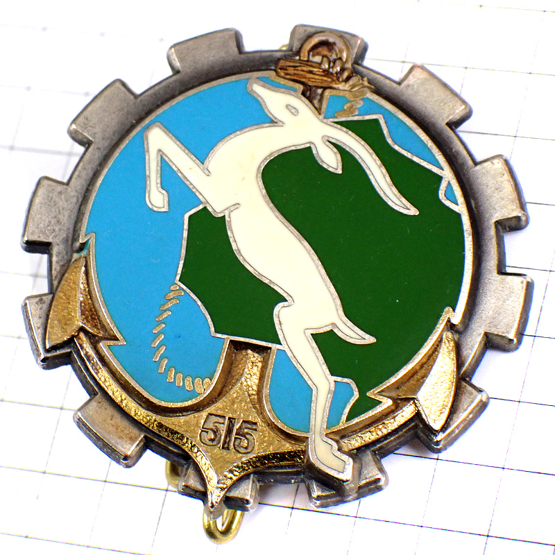 ブローチ・ガゼル動物イカリ錨ミリタリー第515輜重連隊フランス軍 515E-REGIMENT-DU-TRAIN 515RT FRANCE