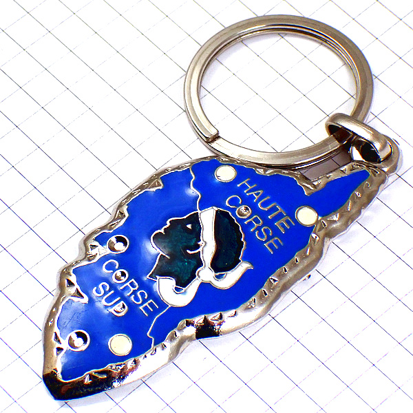 キーホルダー・コルシカ島のシンボル兵士の横顔ブルー青 CORSICA ISLAND MAP MAURE CORSE FRANCE