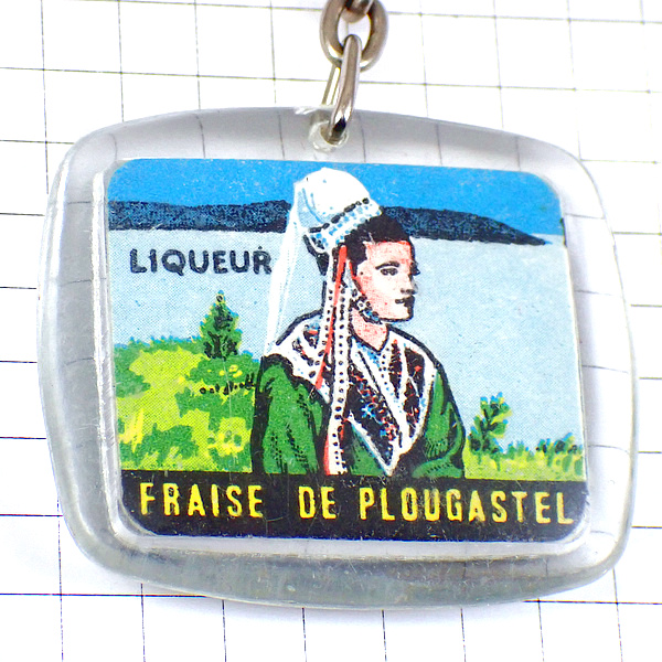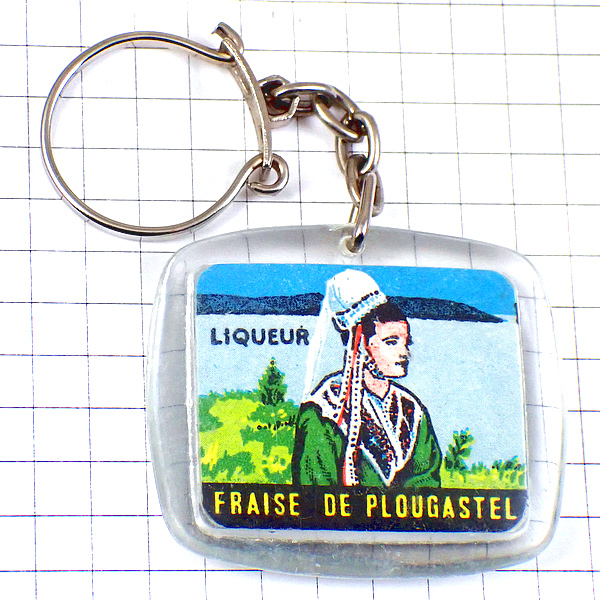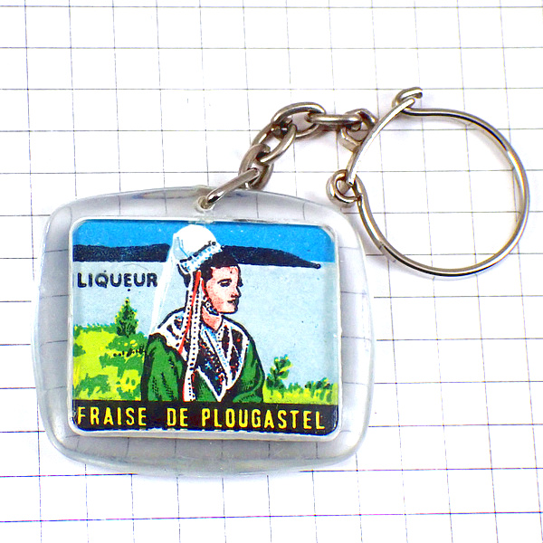 キーホルダー・ブルターニュ民族衣装の女の子リカーお酒
