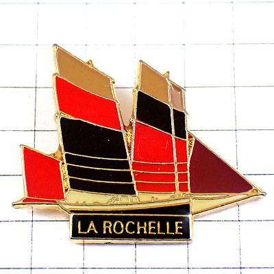 ピンバッジ・ラロシェル帆船ボート赤黒茶色ヨット