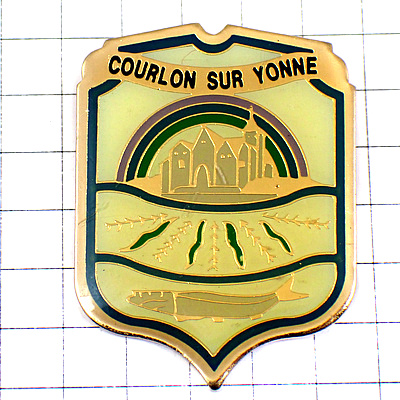 ピンバッジ・クルロン=シュル=ヨンヌ魚や教会の紋章