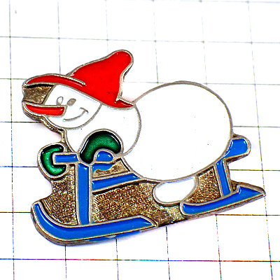 ピンバッジ・雪だるまのスキーソリ滑降 LUGE SNOWMAN