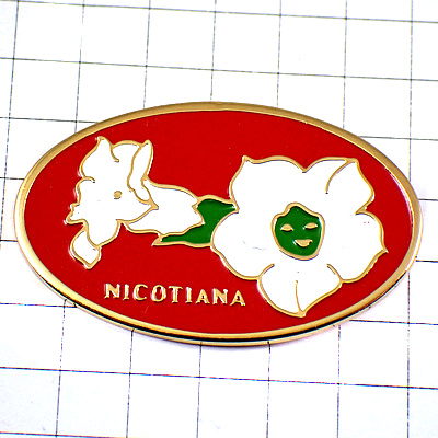 ピンバッジ・タバコの白い花二輪ニコチアナ NICOTIANA TABACUM FLOWER