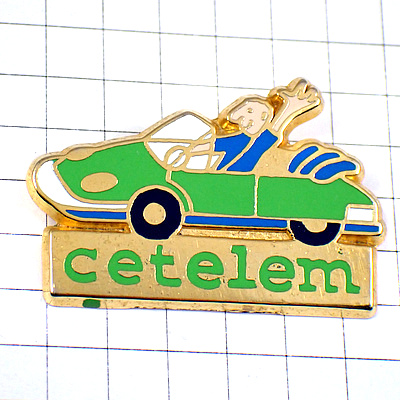 ピンバッジ・緑の車でドライブ中オープンカー CETELEM FRANCE