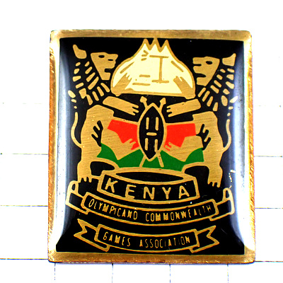 ピンバッジ・ケニヤ国旗ライオン二頭 KENYA OLYMPICS