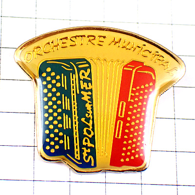 ピンバッジ・アコーディオン音楽楽器トリコロール青白赤 ACCORDEON ORCHESTRE ST-POL BRETAGNE FRANCE