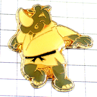 ピンバッジ・動物サイ犀の柔道家しろい道着と黒帯