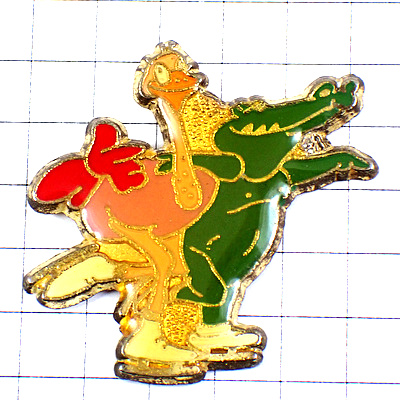 ピンバッジ・フィギュアスケート選手ペア鰐ワニと駝鳥ダチョウ
