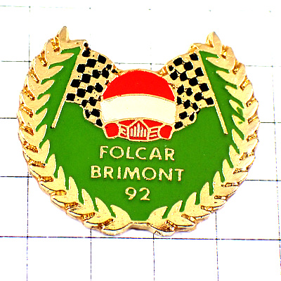 ピンバッジ・赤いヘルメットF1チェッカーフラッグ車レース月桂樹