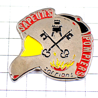 ピンバッジ・消防士のヘルメット紋章のカギ鍵シルバー銀色