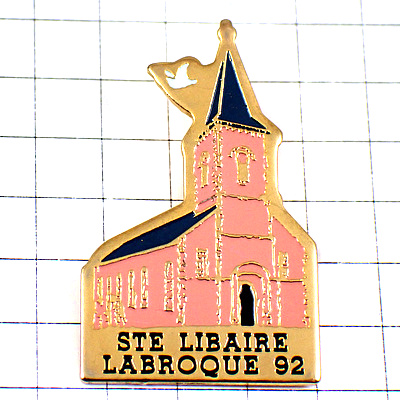 ピンバッジ・ピンク色の教会ピース平和の白い鳩