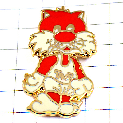 ピンバッジ・赤い猫ネコのスポーツ選手ランニングシャツ
