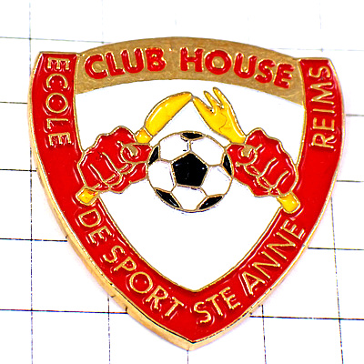 ピンバッジ・サッカー球ナイフとフォーク紋章型クラブハウス