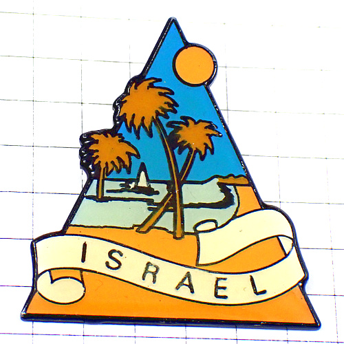 ピンバッジ・イスラエル太陽ヤシの木ボート海の風景