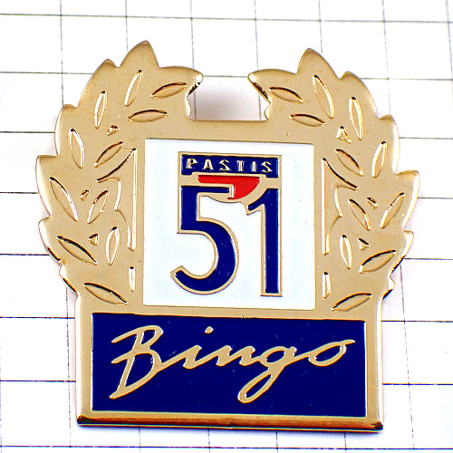 ピンバッジ・パスティス51お酒ビンゴ月桂樹ローリエ金色ゴールド