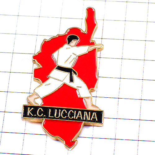 ピンバッジ・空手カラテ黒帯コルシカ島の地図型
