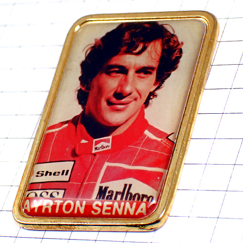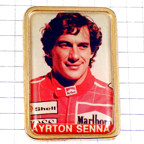 ピンバッジ・高速の貴公子アイルトンセナF1車ドライバー写真 SHEWLL BOSS MARLBORO AYRTON-SENNA LEGEND