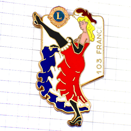 ブローチ・パリジェンヌ踊り子ダンサー足を高く上げる女の子ライオンズクラブL FRENCH-CANCAN LIONS-CLUB 103-FRANCE BROOCH