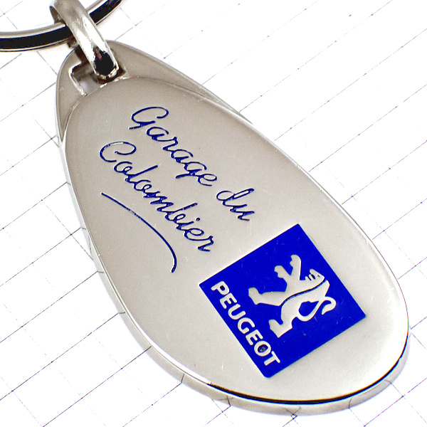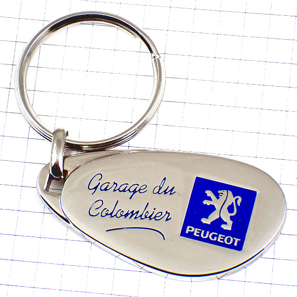 キーホルダー・プジョー紺色シルバーロゴ銀色エンブレムのライオン PEUGEOT FRANCE
