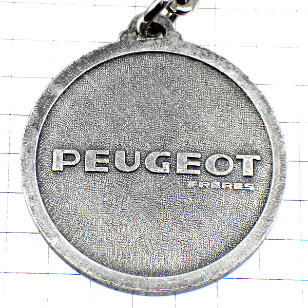 キーホルダー・プジョー車ライオン銀色シルバーエンブレム最初期のロゴ PEUGEOT-FRERES PEUGEOT FRANCE